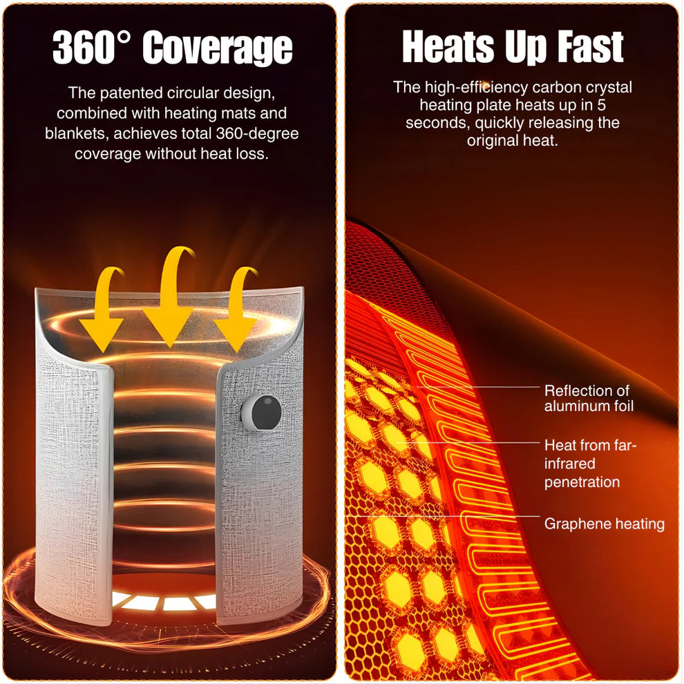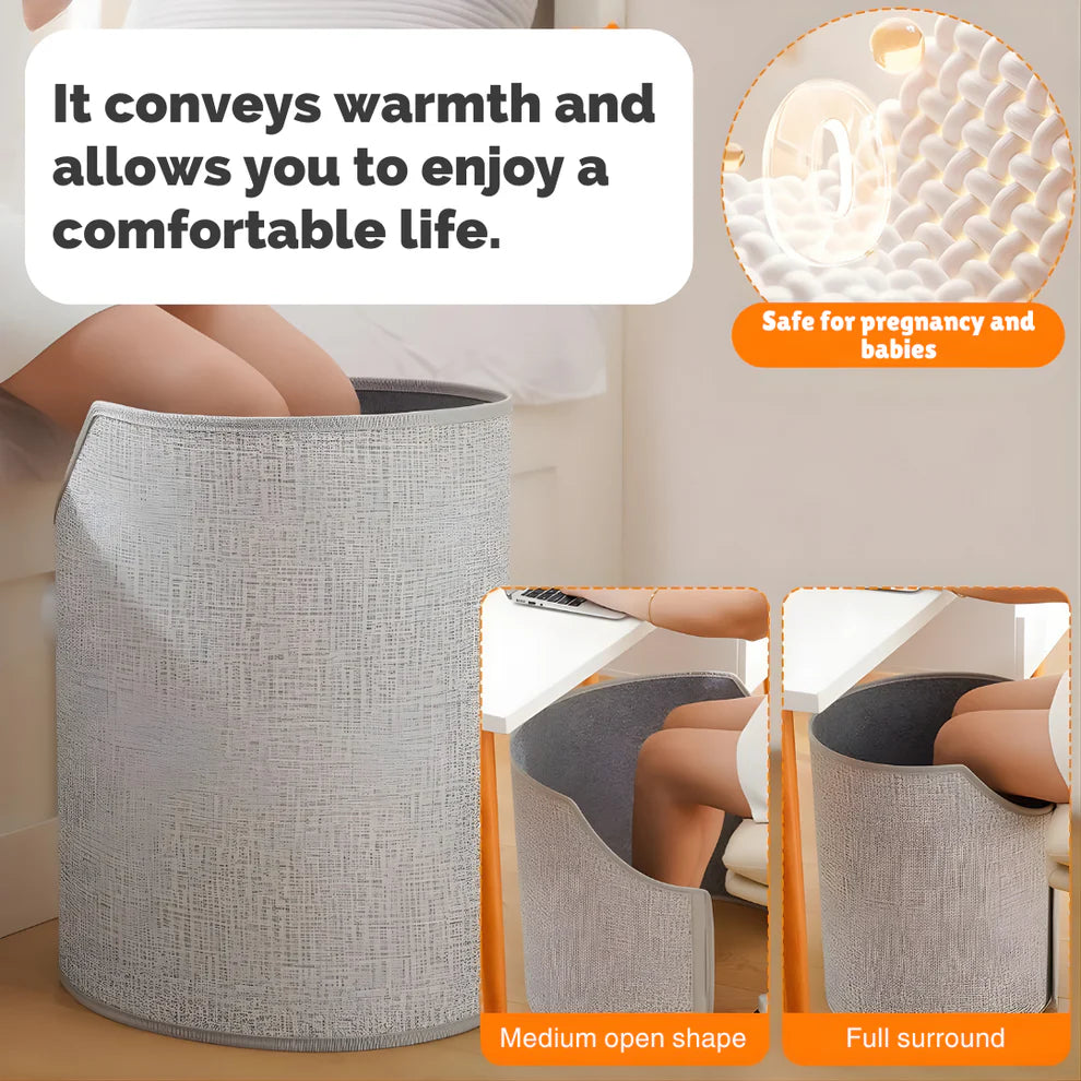 Cold legs slow you down and drain your energy. This heater surrounds your legs with quiet, consistent warmth so you can stay focused, relaxed, and comfortable while you work, read, or unwind — warmth that supports your day instead of interrupting it.
